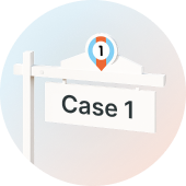 Illustration eines Mannes mit Immobilien-Symbol steht vor zwei angrenzenden Wohnhäusern – Zweifamilienhaus und Einfamilienhaus auf großem Grundstück in München-Trudering, Kreuzerweg 35 & 35a, vermarktet von Firstplace Immobilien.
